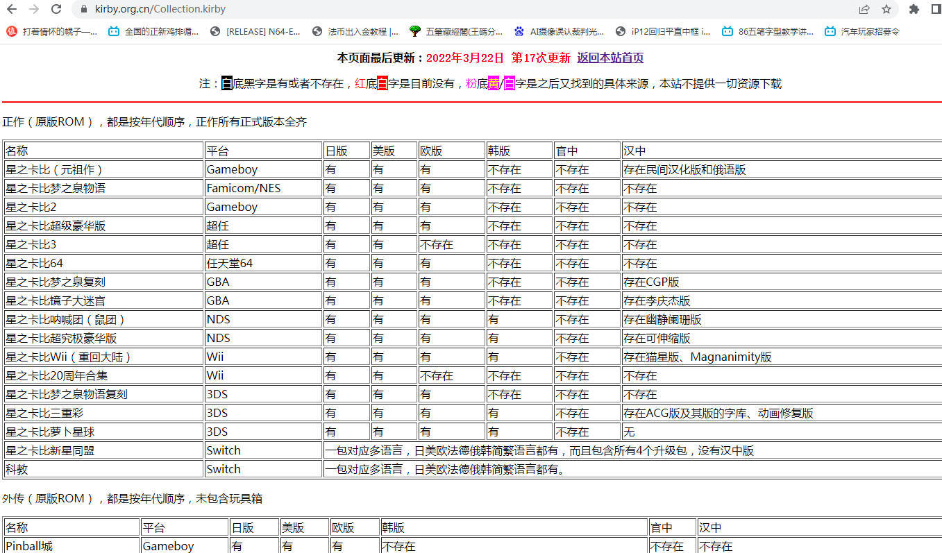 在2018年8月,得知3ds商店再也不能下载盗版游戏,所以我就搞了个企划,企图把网上所有的卡比游戏ROM收集起来,但是不会传出去。