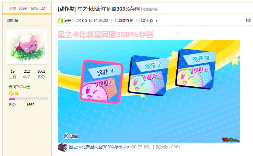那段时间是刚出Switch破解的时候。我把自己打的存档发到了91Wii(现在是91TVG)上。