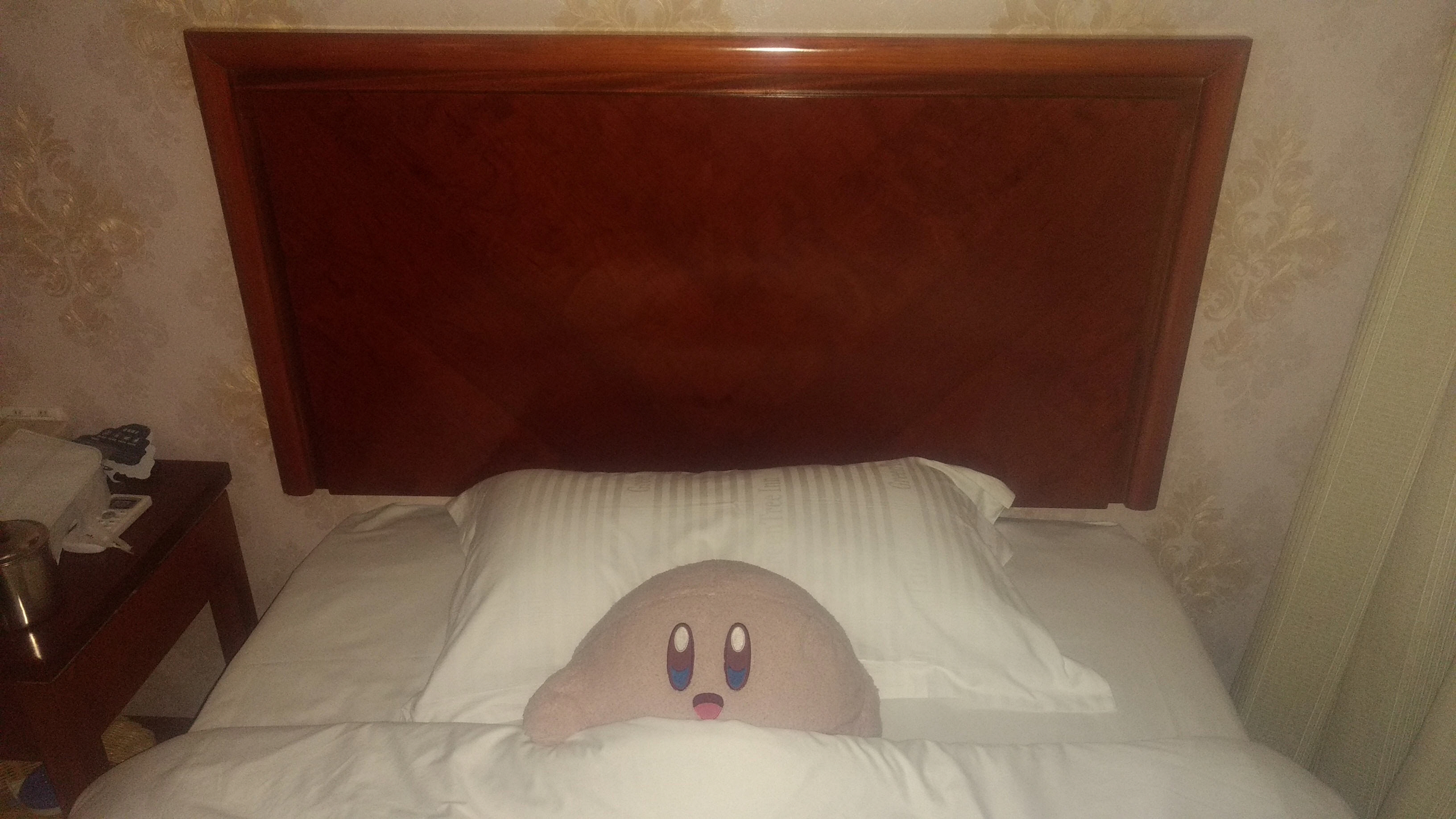 当天坐火车去了南京,在鼓楼区的格林豪泰酒店住下了,然后我拍下了卡比在床上睡觉的样子,这个玩具就是我第一次入手的周边!